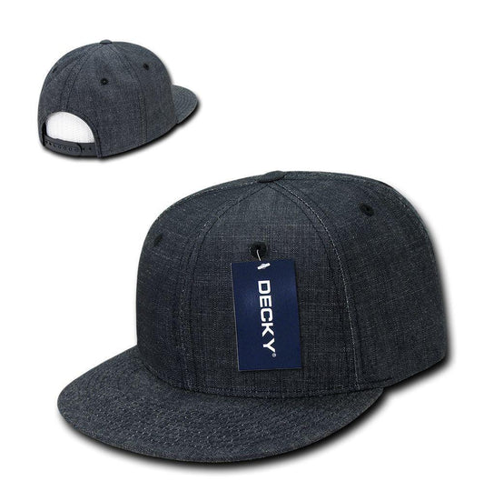 Decky Washed Denim Snapback 100% Cotton 6 Panel Flat Bill Hats Caps