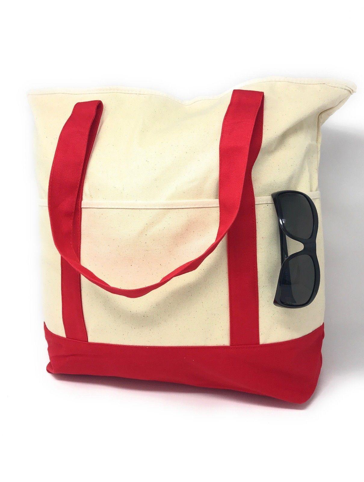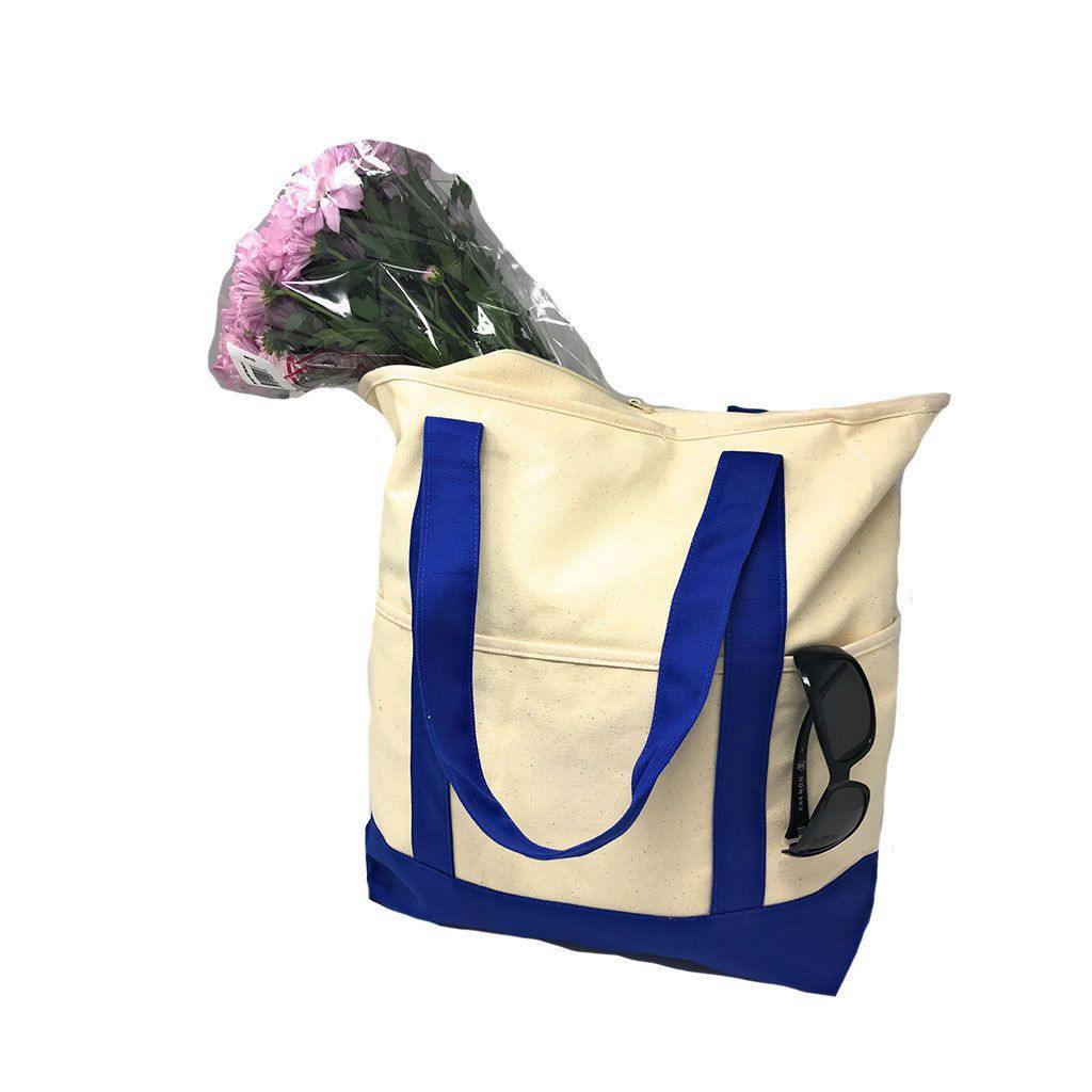 1 Dozen Large 20inch Grocery Shopping Beach Totes Bags Reusable Zippered Cotton Canvas Wholesale